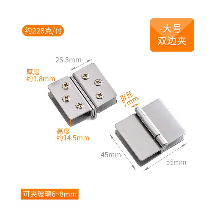 锌合金玻璃铰链免开孔玻璃柜门合页玻璃夹展示柜304不锈钢折页热门设计联盟服务商