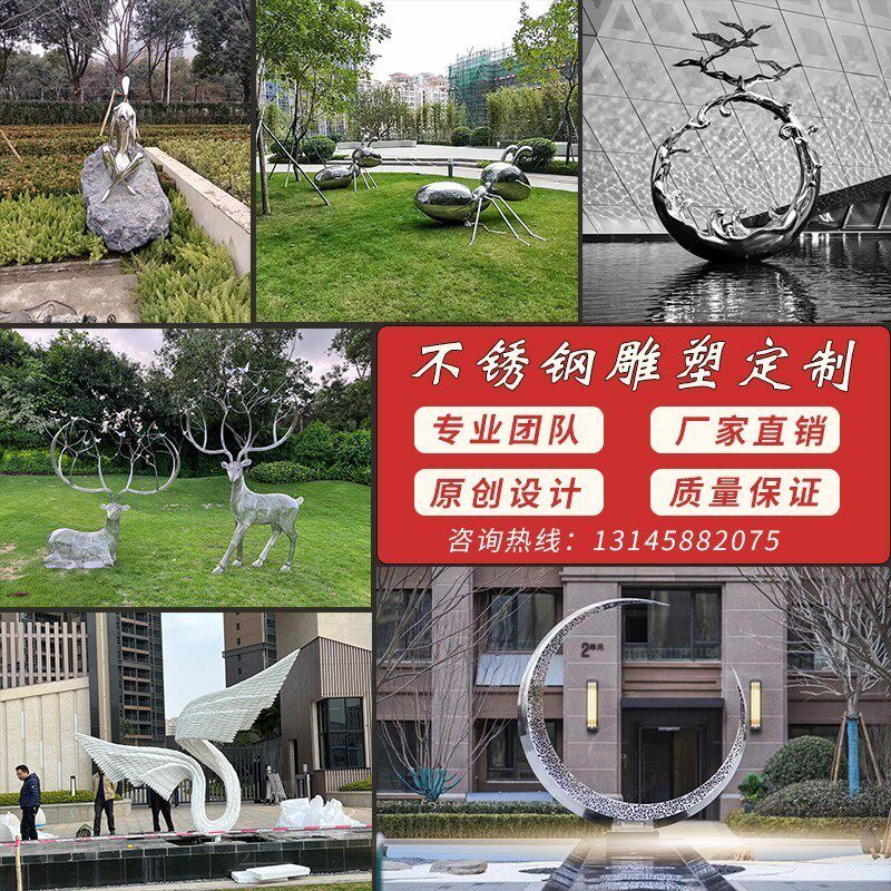 不锈钢雕塑定制大型户外景观水景铁艺金属镜面镂空鹿抽象动物造型热门设计联盟服务商