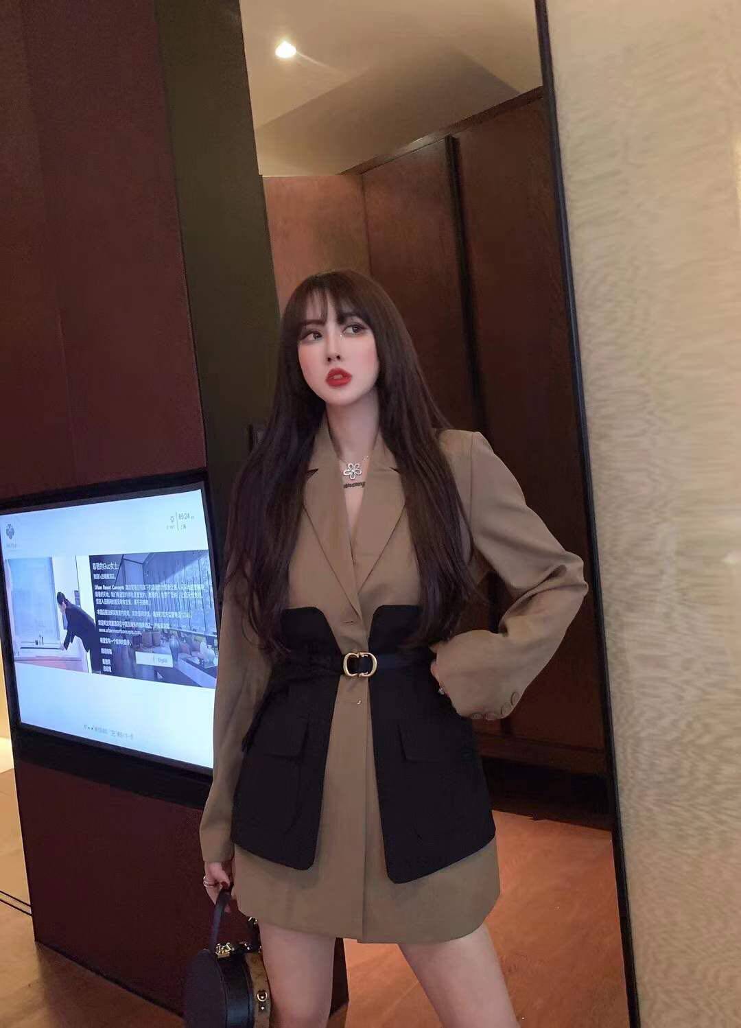 网红同款撞色西装外套女设计感小众2021春秋新款显瘦收腰配腰带潮热门设计联盟服务商