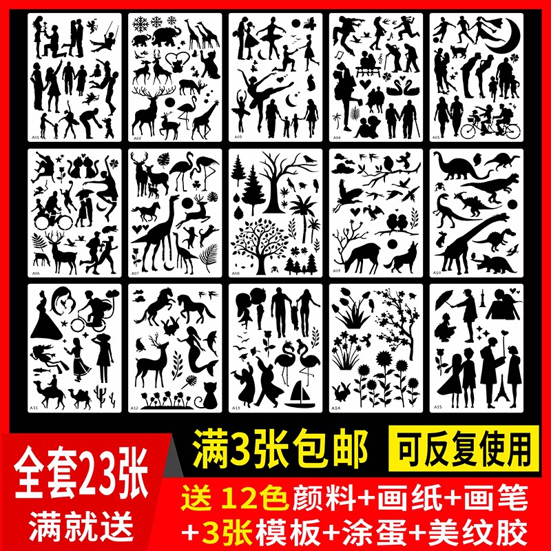 画画模板素艺同款镂空人物情侣绘画模版动物丙烯油画印模具套装热门设计联盟服务商