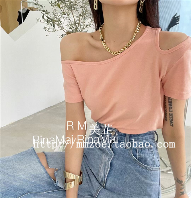 设计小性感短袖露肩T恤女2021夏季新款休闲百搭上衣ins风修身热门设计联盟服务商